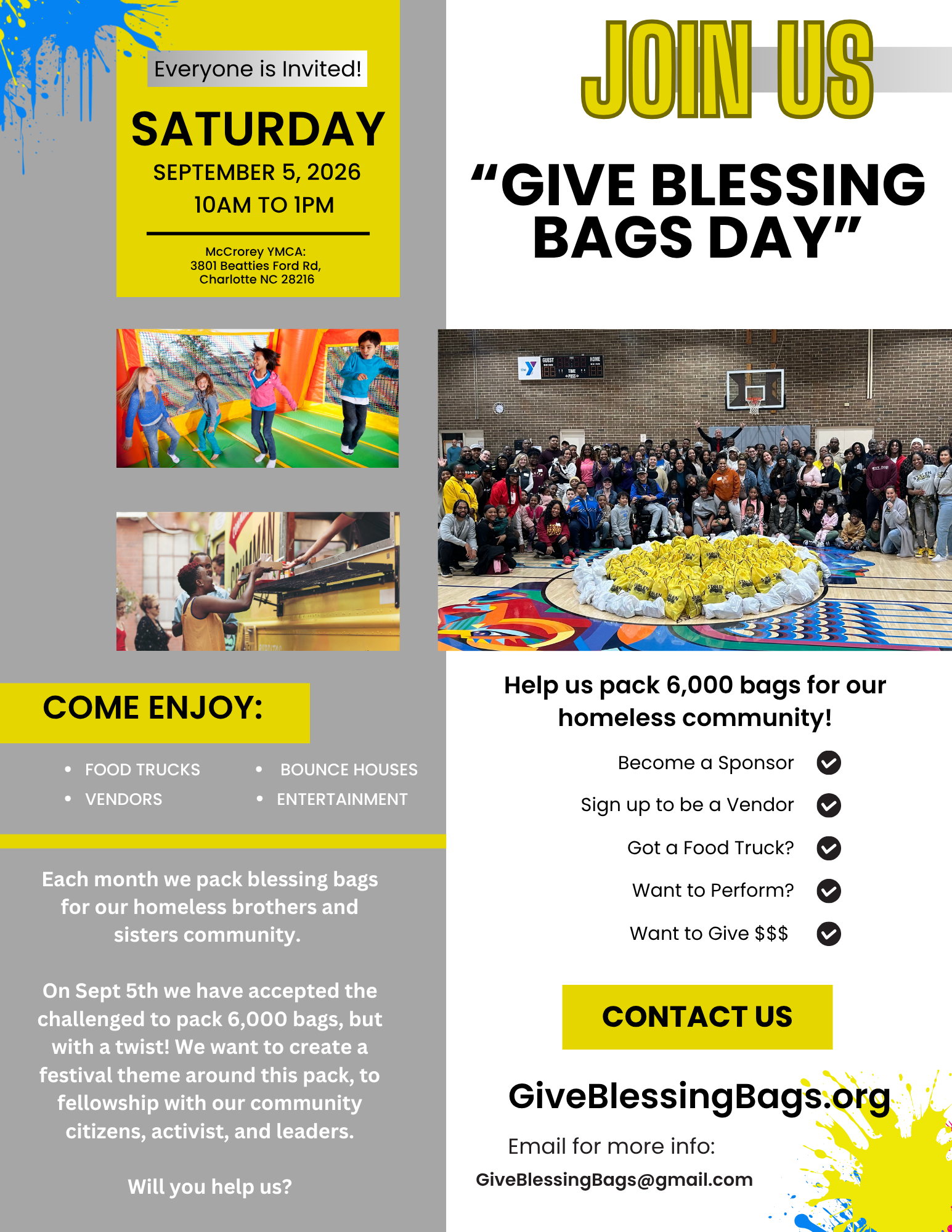 Help us continue the mission of serving our fellow neighbors in need with a financial love offering to Give Blessings Bags.